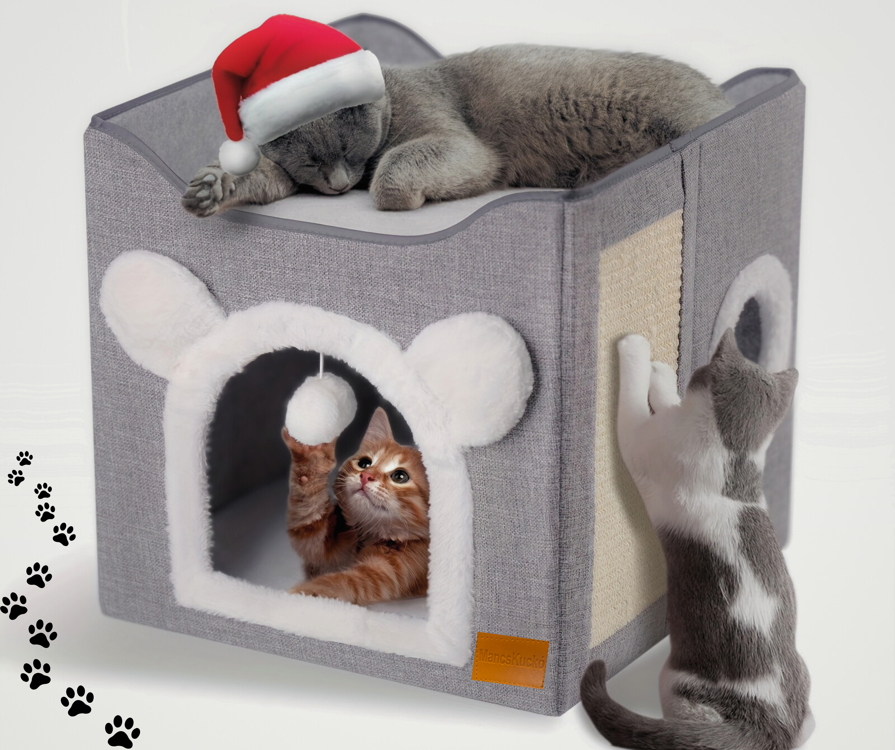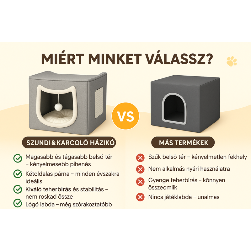 Szundi&Karcoló Házikó – Cicád új kedvenc kuckója! 🐾Ajándékozd meg cicádat egy kényelmes és szórakoztató kuckóval, ahol pihenhet, játszhat és élezheti a karmait – mindezt a bútorok épsége mellett! Miért imádják a cicák?